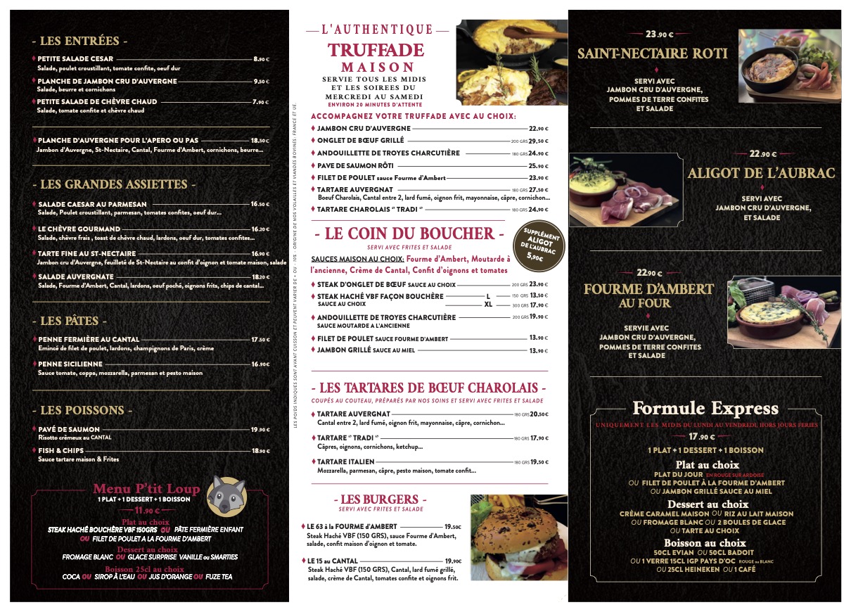 Depuis 46 ans, notre brasserie auvergnate vous accueille en plein cœur de Clermont-Ferrand dans une ambiance chaleureuse et conviviale. Véritable institution locale, nous mettons à l'honneur les saveurs authentiques de notre région à travers des spécialités emblématiques telles que la Truffade, l’Aligot ou encore le Saint-Nectaire rôti.
